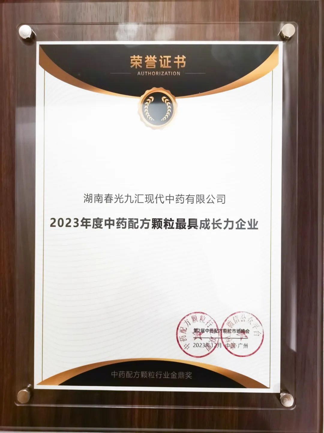 峰會舉行了中藥配方顆粒行業(yè)金鼎獎頒獎儀式,公司獲評“2023年度中藥配方顆粒最具成長力企業(yè)”。