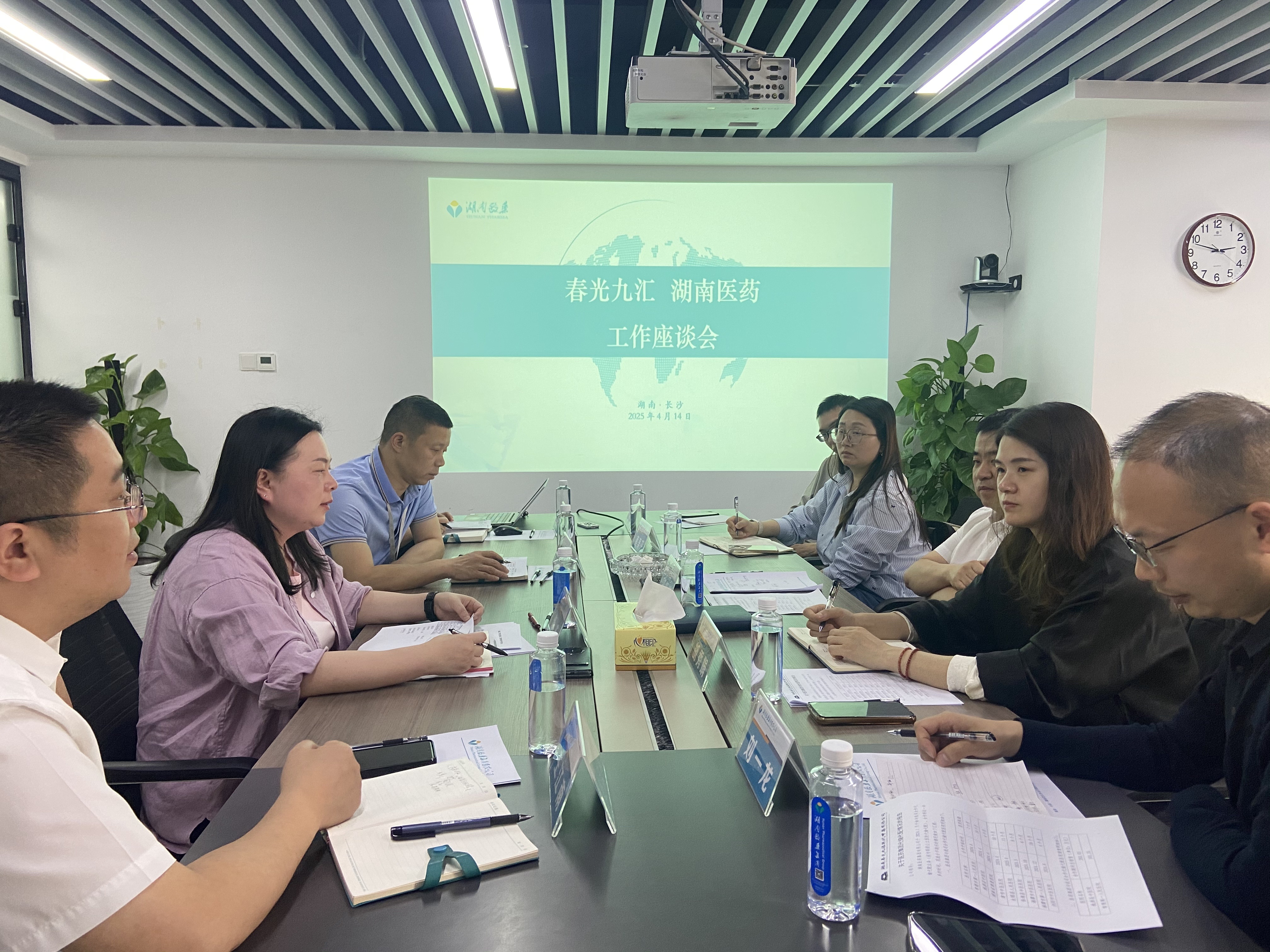 沈帆順一行與湖南醫(yī)藥黨委副書(shū)記、總經(jīng)理譚豐,營(yíng)銷(xiāo)總監(jiān)葉德欣及其中藥事業(yè)部負(fù)責(zé)同志進(jìn)行座談,雙方就代儲(chǔ)代配業(yè)務(wù)的前期合作情況、新一輪合作協(xié)議進(jìn)行了細(xì)致全面的交流洽談,并就未來(lái)進(jìn)一步推進(jìn)業(yè)務(wù)協(xié)同和資源共享進(jìn)行了深入探討。